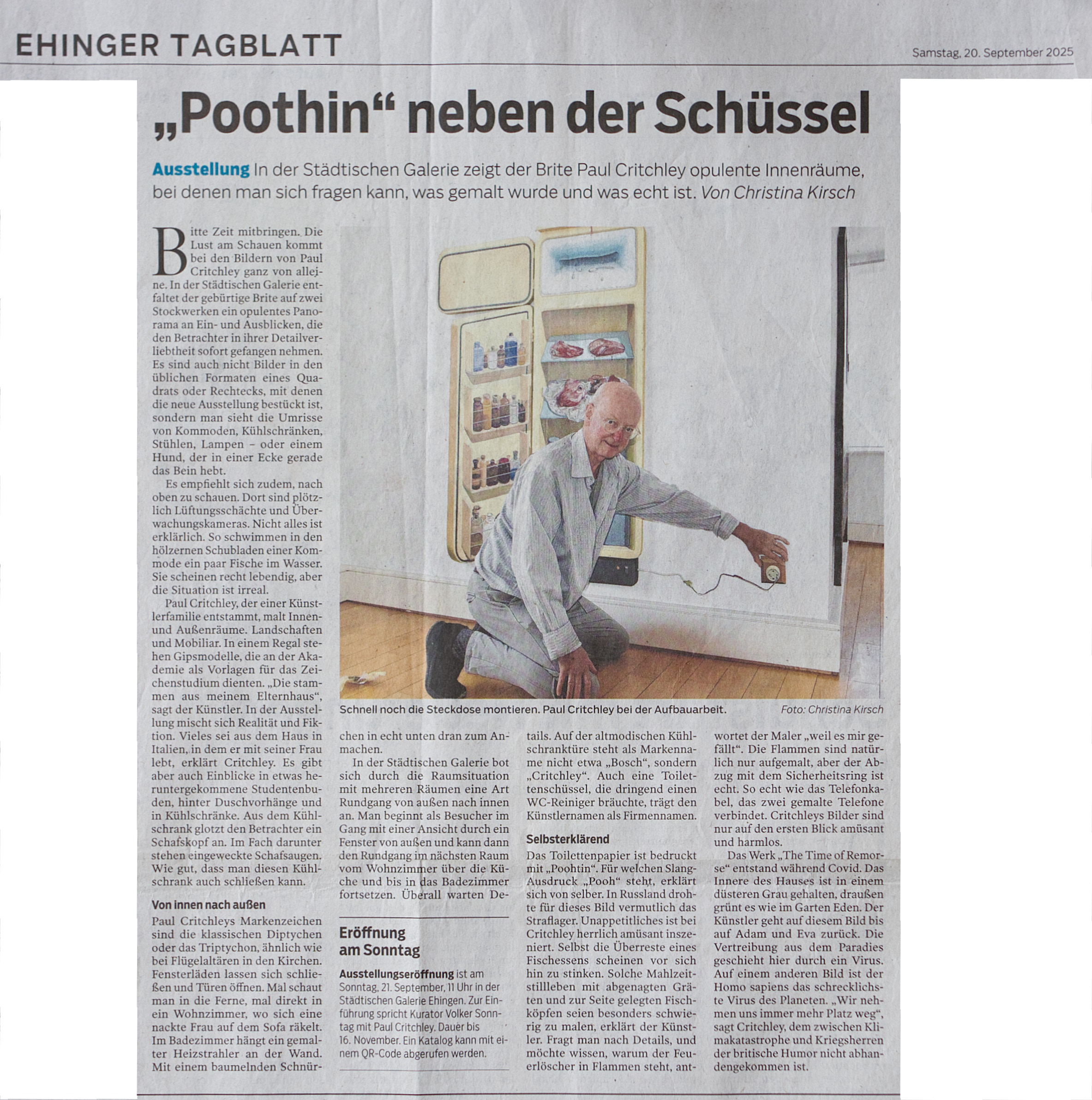 My installation A Sense of Place, together with a selection of other paintings, will be exhibited in Ehingen in a solo show from 21st September until 16th November 2025.