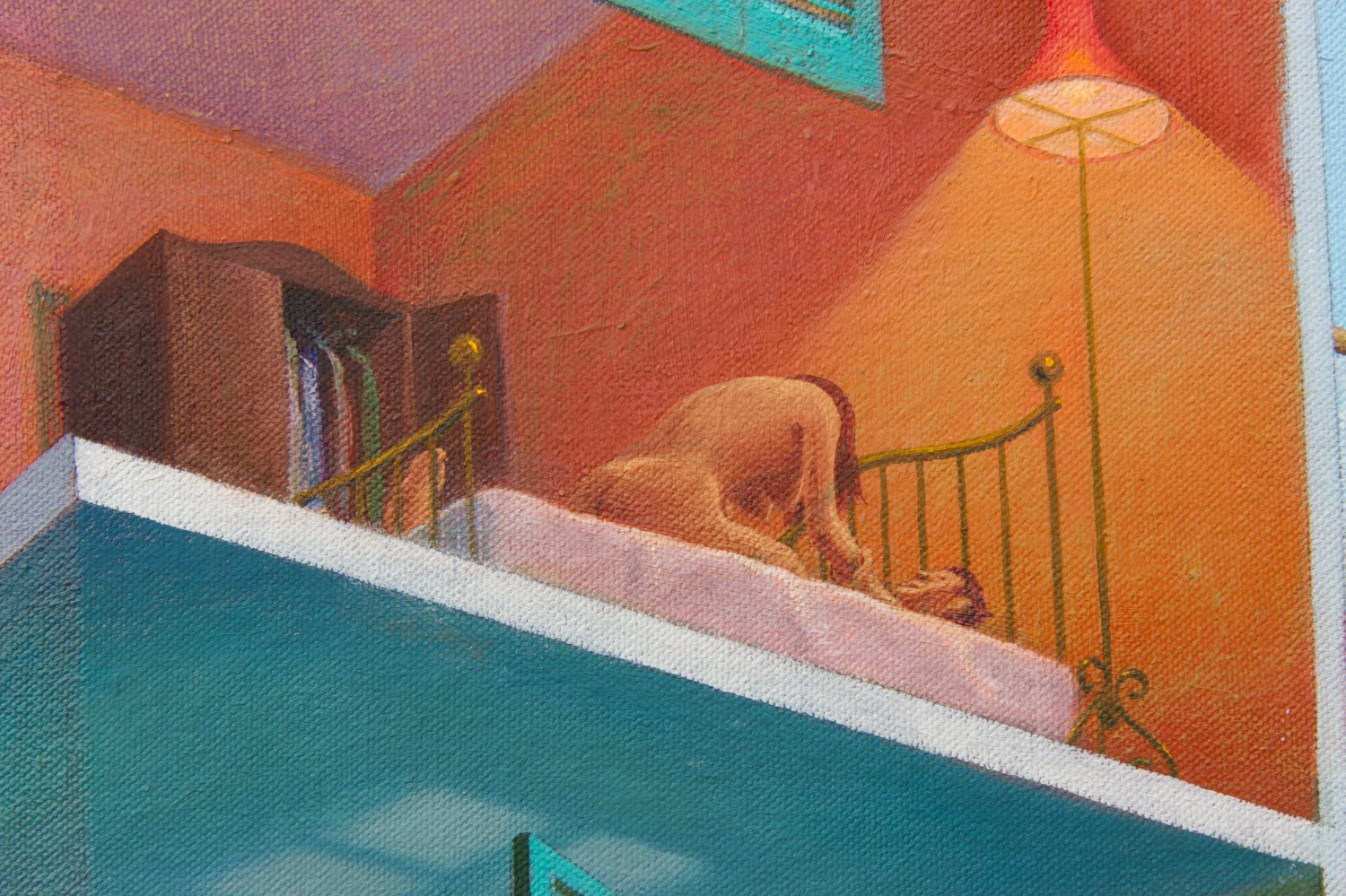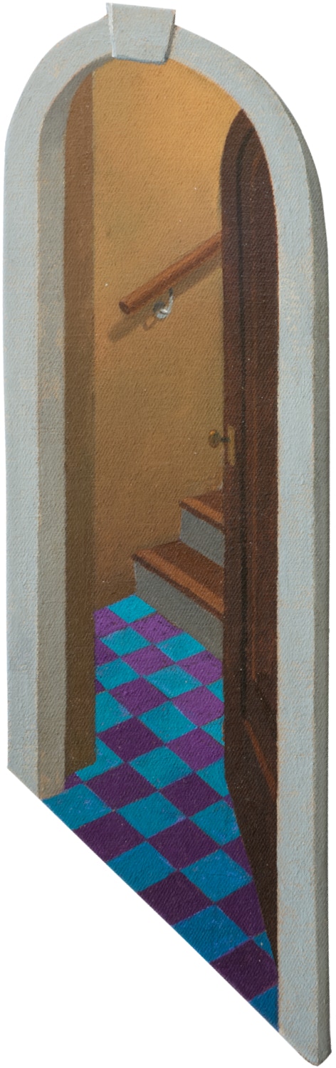 I spent the whole day just walking up and down, exploring, gradually day turned to night. So I made two paintings: one day, one night, and both beneath the stupendous sky above the piazza. Since I had seen the village from different places the paintings can be hung upright and upside down in order to see the same buildings from a different view point. Each painting has two views just like we do when we turn around.